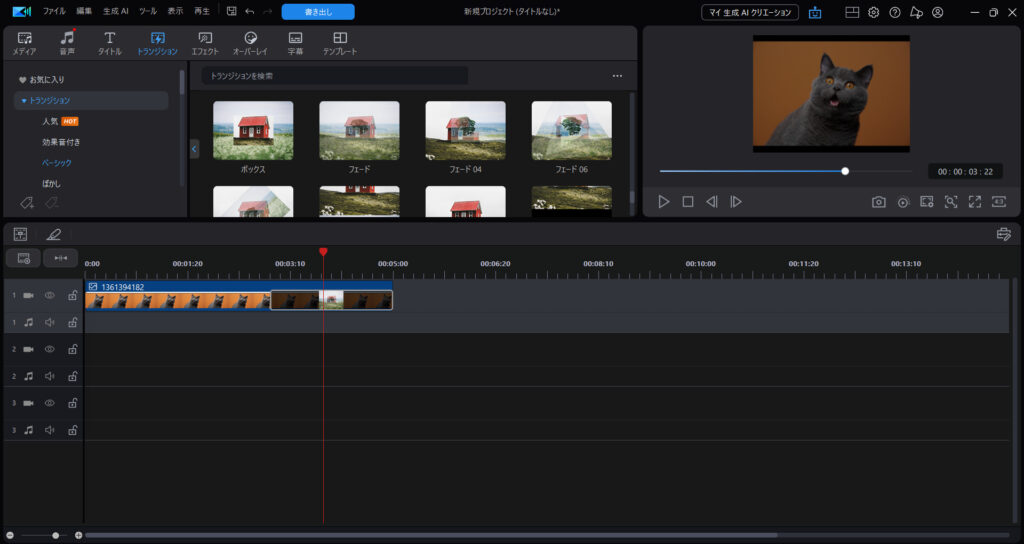 - 「トランジション」メニューを選択