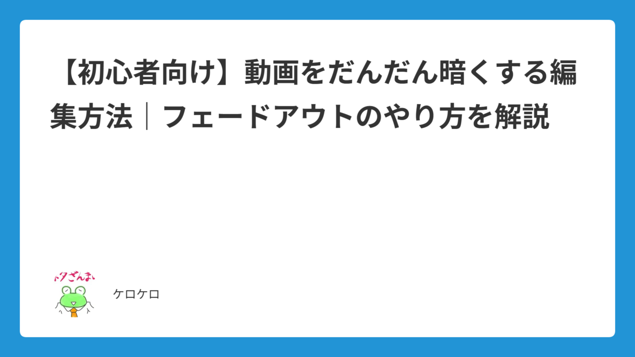 「だんだん暗くなる編集」は、動画を自然に締めるための重要テクニックです。