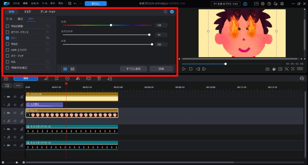 🔹 PowerDirectorで炎エフェクトを入れる手順