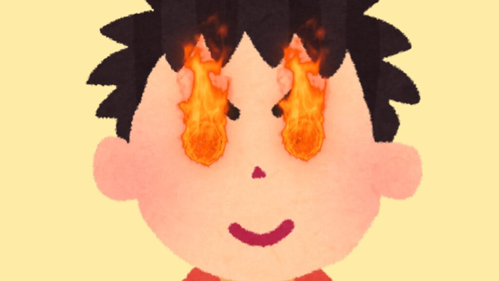 目に炎エフェクトを重ねて、漫画的表現にしてみました。