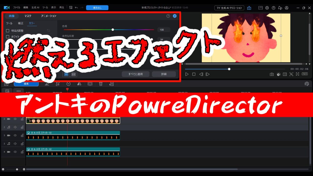 🔹 PowerDirectorで炎エフェクトを入れる手順