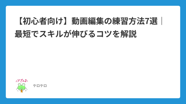 編集テクニック 【初心者向け】動画編集の練習方法7選|最短でスキルが伸びるコツを解説 2026年4月9日 ケロケロ 「動画編集を始めたけど、どうやって練習すればいいの?」 そんな悩みを持つ方に向けて、この記事では動画編集の練習方法をわかりやすく解説 …