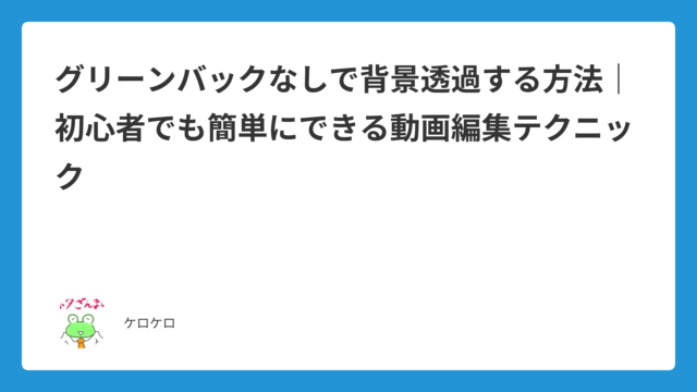 編集テクニック グリーンバックなしで背景透過する方法|初心者でも簡単にできる動画編集テクニック 2026年4月1日 ケロケロ 動画編集をしていると、「背景だけ消して人物やモノだけ残したい」と思う場面は多いですよね。 従来はグリーンバック(クロマキー)が必須で …